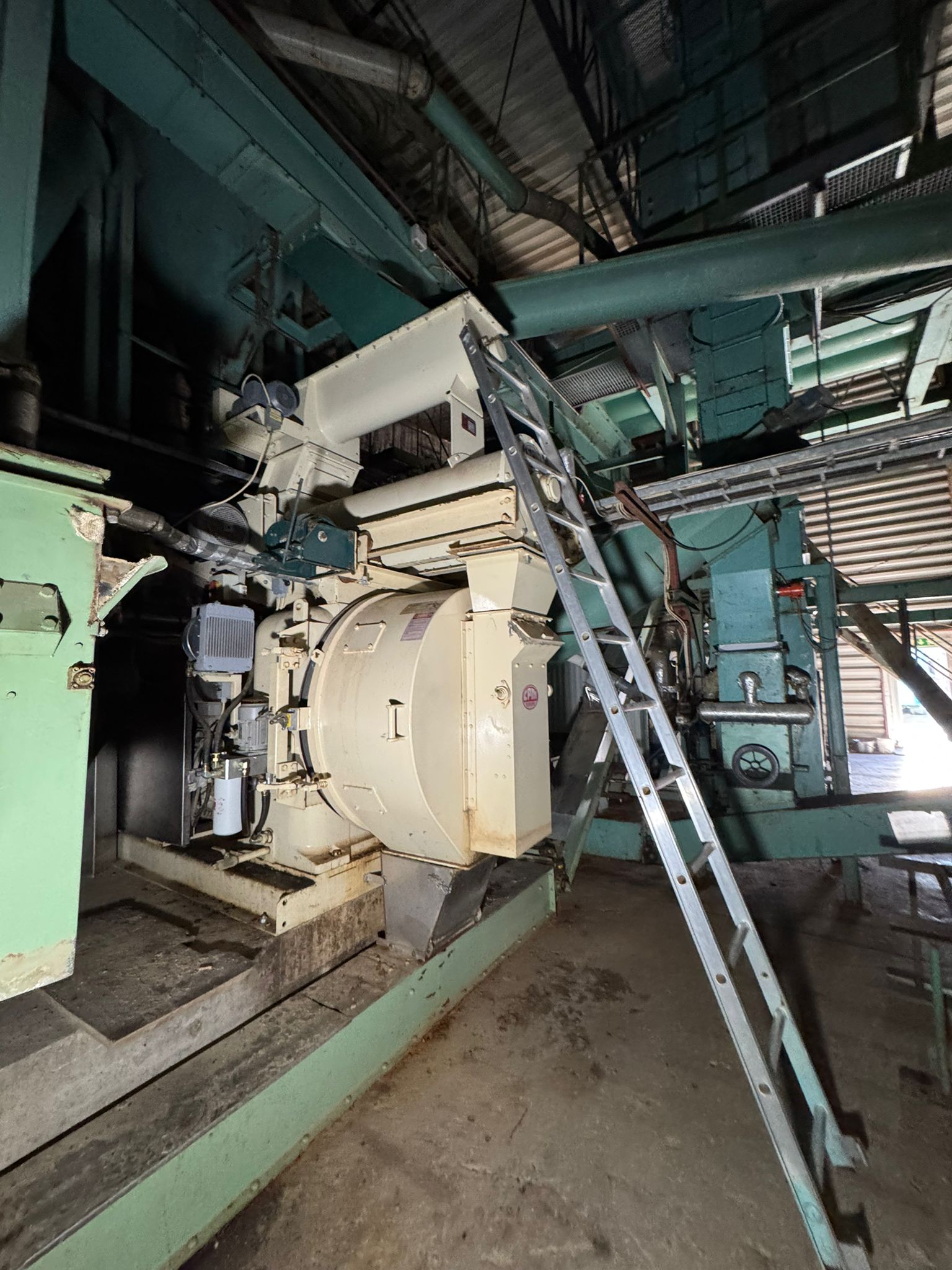 Pilnīga granulu ražošanas līnija ar maksimālo jaudu līdz 5 tonnām stundā (ierobežota ar žāvētāja kapacitāti).