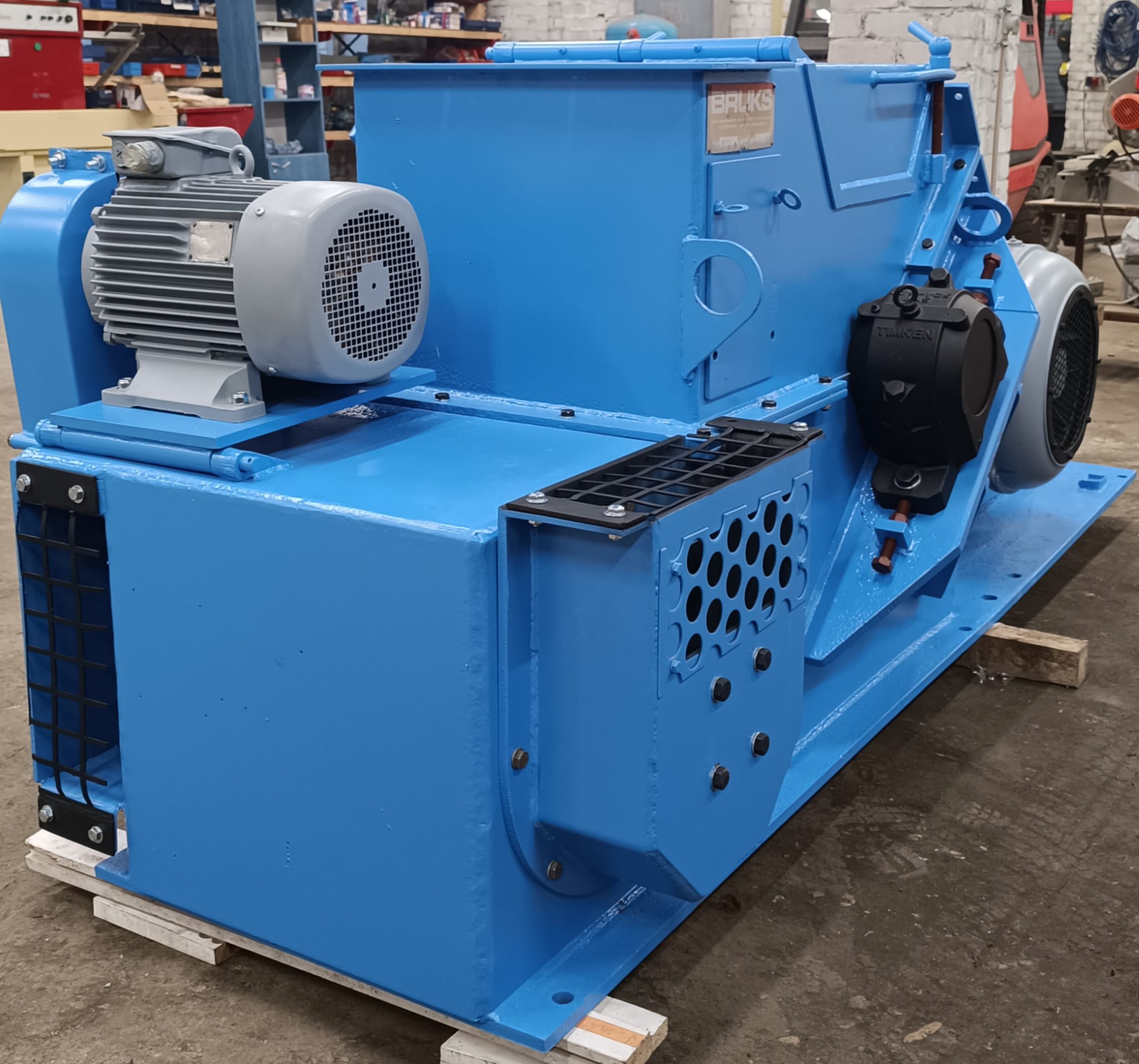 Bruks 803CS — это промышленная барабанная измельчитель древесины, предназначенная для измельчения древесных отходов, таких как ветки, кромки досок и обрезки.